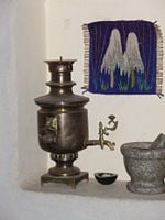 Finally, charcoal-burning samovars come with two accessories: A cap and a chimney extension for the tube. Both need to be placed onto the open end of the heating tube, though not at the same time.