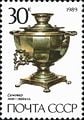 A classical samovar, ca 1830-1840, depicted on a 1989 USSR postage stamp.