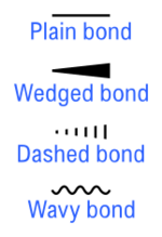 Hashed wedges or dashed lines (thick or thin) represent bonds that point into the plane of the paper or screen, away from the observer.[lower-alpha 7]