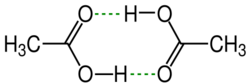 Dashed lines (green) to show hydrogen bonding in acetic acid.