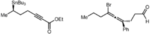 Carbon atoms are represented by the vertices (intersections or termini) of line segments. For clarity, methyl groups are often explicitly written out as Me or CH3, while (hetero)cumulene carbons are frequently represented by a heavy center dot.