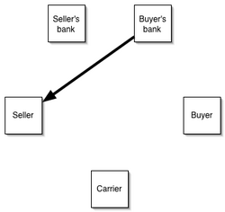 A letter of credit is an important payment method in international trade. It is particularly useful where the buyer and seller may not know each other personally and are separated by distance, differing laws in each country, and different trading customs. It is a primary method in international trade to mitigate the risk a seller of goods takes when providing those goods to a buyer. It does this by ensuring that the seller is paid for presenting the documents which are specified in the contract for sale between the buyer and the seller. That is to say, a letter of credit is a payment method used to discharge the legal obligations for payment from the buyer to the seller, by having a bank pay the seller directly. Thus, the seller relies on the credit risk of the bank, rather than the buyer, to receive payment. As will be seen, and is observed in Image 2, the bank will pay the seller the value of the goods when the seller provides negotiable instruments, documents which themselves represent the goods.[11][3] Upon presentation of the documents, the goods will traditionally be in the control of the issuing bank, which provides them security against the risk that the buyer (who had instructed the bank to pay the seller) will repay the bank for making such a payment.