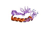 Peptide YY (PYY) also known as peptide tyrosine tyrosine is a peptide that in humans is encoded by the PYY gene.[1] Peptide YY is a short (36-amino acid) peptide released from cells in the ileum and colon in response to feeding. In the blood, gut, and other elements of periphery, PYY acts to reduce appetite; similarly, when injected directly into the central nervous system, PYY is also anorexigenic, i.e., it reduces appetite.[2]