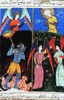 Afterlife in Islam actually begins before the Last Day. After death, humans will be questioned about their faith by two angels, Munkar and Nakīr. Those who die as martyrs go immediately to paradise.[72] Others who have died and been buried, will receive a taste of their eternal reward from the al-qabr or "the grave" (compare the Jewish concept of Sheol). Those bound for hell will suffer "punishment of the grave", while those bound for heaven will find the grave "peaceful and blessed".[75]