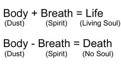 The Seventh-day Adventist Church's beliefs regarding the afterlife differ from other Christian churches. Rather than ascend to Heaven or descend to Hell, Adventists believe the dead "remain unconscious until the return of Christ in judgement". The concept that the dead remain dead until resurrection is one of the fundamental beliefs of Seventh-day Adventism.[68] Adventists believe that death is an unconscious state (a "sleep"). This is based on Matt. 9:24; Mark 5:39; John 11:11–14; 1 Cor. 15:51, 52; 1 Thess. 4:13–17; 2 Peter 3:4; Eccl. 9:5, 6, 10. At death, all consciousness ends. The dead person does not know anything and does not do anything.[69] They believe that death is a decreation, or an undoing of what was created. This is described in Ecclesiastes 12:7: "When a person dies, the body turns to dust again, and the spirit goes back to God, who gave it." The spirit of every person who dies—whether saved or unsaved—returns to God at death. The spirit that returns to God at death is the breath of life.[70]