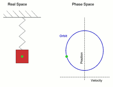 The phase space of a two-dimensional system is called a phase plane, which occurs in classical mechanics for a single particle moving in one dimension, and where the two variables are position and velocity. In this case, a sketch of the phase portrait may give qualitative information about the dynamics of the system, such as the limit cycle of the Van der Pol oscillator shown in the diagram.