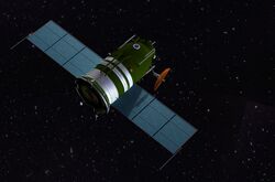 Korolev received word about von Braun's 1956 Jupiter-C test and, mistakenly thinking it was a satellite mission that failed, expedited plans to get his own satellite in orbit. Since the R-7 was substantially more powerful than any of the US launch vehicles, he made sure to take full advantage of this capability by designing Object D as his primary satellite.[54] It was given the designation 'D', to distinguish it from other R-7 payload designations 'A', 'B', 'V', and 'G' which were nuclear weapon payloads.[55] Object D dwarfed the proposed US satellites, having a weight of 1,400 kilograms (3,100 lb), of which 300 kilograms (660 lb) would be composed of scientific instruments that would photograph the Earth, take readings on radiation levels, and check on the planet's magnetic field.[55] However, things were not going along well with the design and manufacturing of the satellite, so in February 1957, Korolev sought and received permission from the Council of Ministers to build a Prosteishy Sputnik (PS-1), or simple satellite.[54] The council also decreed that Object D be postponed until April 1958.[56] The new Sputnik was a metallic sphere that would be a much lighter craft, weighing 83.8 kilograms (185 lb) and having a 58-centimeter (23 in) diameter.[57] The satellite would not contain the complex instrumentation that Object D had, but had two radio transmitters operating on different short wave radio frequencies, the ability to detect if a meteoroid were to penetrate its pressure hull, and the ability to detect the density of the Earth's thermosphere.[58]