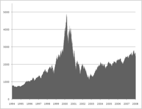 The Nasdaq crash and technology slump that started in March 2000 shook virtually the entire venture capital industry as valuations for startup technology companies collapsed. Over the next two years, many venture firms had been forced to write-off large proportions of their investments, and many funds were significantly "under water" (the values of the fund's investments were below the amount of capital invested). Venture capital investors sought to reduce the size of commitments they had made to venture capital funds, and, in numerous instances, investors sought to unload existing commitments for cents on the dollar in the secondary market. By mid-2003, the venture capital industry had shriveled to about half its 2001 capacity. Nevertheless, PricewaterhouseCoopers' MoneyTree Survey[24] shows that total venture capital investments held steady at 2003 levels through the second quarter of 2005.[citation needed]