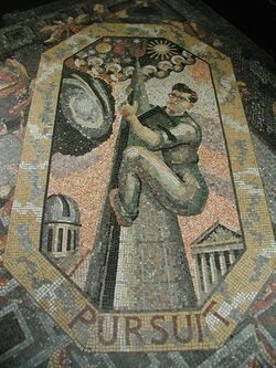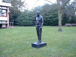 In late 1940, Hoyle left Cambridge to go to Portsmouth to work for the Admiralty on radar research, for example devising a method to get the altitude of the incoming aeroplanes. He was also put in charge of countermeasures against the radar guided guns found on the Graf Spee.[8] Britain's radar project employed more personnel than the Manhattan project, and was probably the inspiration for the large British project in The Black Cloud. Two key colleagues in this war work were Hermann Bondi and Thomas Gold, and the three had many and deep discussions on cosmology. The radar work paid for a couple of trips to North America, where he took the opportunity to visit astronomers. On one trip to the US he learned about supernovae at Caltech and Mount Palomar and, in Canada, the nuclear physics of plutonium implosion and explosion, noticed some similarity between the two and started thinking about supernova nucleosynthesis. He had an intuition at the time "I will make a name for myself if this works out." Eventually (1954) his prescient and ground breaking paper came out. He also formed a group at Cambridge exploring stellar nucleosynthesis in ordinary stars and was bothered by the paucity of stellar carbon production in existing models. He noticed that one of the existing processes would be made a billion times more productive if the carbon-12 nucleus had a resonance at 7.7 MeV, but the nuclear physicists did not list such a one. On another trip he visited the nuclear physics group at Caltech, spending a few months of sabbatical there and persuaded them against their considerable scepticism to look for and find the Hoyle state in carbon-12, from which developed a full theory of stellar nucleosynthesis, co-authored by Hoyle with some members of the Caltech group.[9]