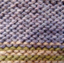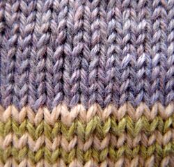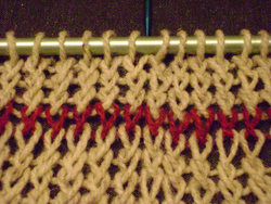 The Armenian knitting technique tacks the non-working yarn to the piece regularly to limit floats. You will tack your non-working yarn down approximately every 3 stitches.