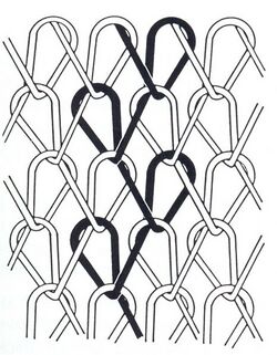 Ordinarily, stitches are knitted in the same order in every row, and the wales of the fabric run parallel and vertically along the fabric. However, this need not be so, since the order in which stitches are knitted may be permuted so that wales cross over one another, forming a cable pattern. Cable patterns tend to draw the fabric together, making it denser and less elastic;[11] Aran sweaters are a common form of knitted cabling.[12] Arbitrarily complex braid patterns can be done in cable knitting, with the proviso that the wales must move ever upwards; it is generally impossible for a wale to move up and then down the fabric. Knitters have developed methods for giving the illusion of a circular wale, such as appear in Celtic knots, but these are inexact approximations. However, such circular wales are possible using Swiss darning, a form of embroidery, or by knitting a tube separately and attaching it to the knitted fabric.