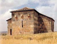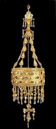 However, in fact, the Visigoths were preservers of the classical culture.[28] The bathing culture of Andalusia, for example, often said to be a Muslim invention, is a direct continuation of Romano-Visigothic traditions. Visigothic Merida housed baths supplied with water by aqueducts, and such aqueducts are also attested in Cordoba, Cadiz and Recopolis. Excavations confirm that Recopolis and Toledo, the Visigothic capital, were heavily influenced by the contemporary Byzantine architecture.[29] When the Muslims looted Spain during their conquest they were amazed by the fine and innumerable Visigothic treasures.[30] A few of these treasures were preserved as they were buried during the invasion--e.g., the votive crowns from the treasure of Guarrazar.[31] And while only the senior monks were allowed to read books of non-Christian or heretic authors[32] this didn't prevent the rise of intellectuals like, most prominently, Isidore of Sevilla, one of the most quoted scholars of the Middle Ages, Eugenius I of Toledo, an expert in mathematics and astronomy, or Theodulf of Orléans, a theologian and poet who, after he had fled to the Frankish kingdom, participated in the Carolingian Renaissance.[33] A Muslim source referred to Visigothic Sevilla as the "abode of the sciences".[34] The Institutionum disciplinae from the mid seventh/early eight century confirms that Visigothic nobles were not only taught in reading and writing, but also in medicine, law and philosophy.[35] An example of a highly educated nobleman was king Sisebut, who was a patron of learning and writer of poems, one of them about astronomy.[36]
