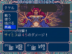 The enemy encounters are random and the battles, depending on the version, are displayed either in a first-person perspective like in the previous games in the series (similar to these in Wizardry) or in a side-view style (like in many other Japanese RPGs from that era such as the early Final Fantasy entries). The battles are partially automated with the enemies and characters attacking each other in real-time. A battle can be paused at any time to cast a spell, use an item, or change attack style through a list of AI scripts.[4] There are eight levels of attack strength, each with its advantages and disadvantages (for example, more powerful attack levels require more time).
