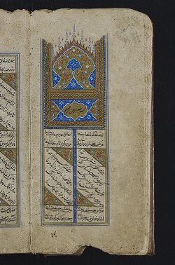However, the most significant changes to the ghazal occurred in its introduction into Iran in the 10th century.[8] The early Persian ghazals largely imitated the themes and form of the Arabian ghazal. These "Arabo-Persian" ghazals introduced two differences compared to their Arabian poetic roots. Firstly, the Persian ghazals did not employ radical enjambment between the two halves of the couplet, and secondly, the Persian ghazals formalized the use of the common rhyme in both lines of the opening couplet ("matla").[3] The imitation of Arabian forms in Persia extended to the qaṣīda, which was also popular in Persia.