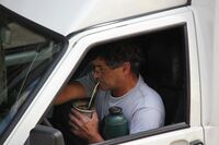 In Uruguay, people commonly walk around the streets toting a mate and a thermos with hot water. In some parts of Argentina, gas stations sponsored by yerba mate producers provide free hot water to travelers, specifically for the purpose of drinking during the journey. Disposable mate sets with a plastic mate and straw and sets with a thermos flask and stacking containers for the yerba and sugar inside a fitted case are available.