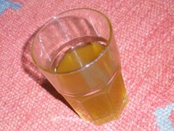Another drink can be prepared with specially cut dry leaves, very cold water, and, optionally, lemon or another fruit juice, called tereré. It is very common in Paraguay, northeastern Argentina and in the state of Mato Grosso do Sul, Brazil. After pouring the water, it is considered proper to "wait while the saint has a sip" before the first person takes a drink. In southern Brazil, tererê is sometimes used as a derogatory term for a not hot enough chimarrão.