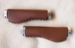 The handlebars connect to the stem that connects to the fork that connects to the front wheel, and the whole assembly connects to the bike and rotates about the steering axis via the headset bearings. Three styles of handlebar are common. Upright handlebars, the norm in Europe and elsewhere until the 1970s, curve gently back toward the rider, offering a natural grip and comfortable upright position. Drop handlebars "drop" as they curve forward and down, offering the cyclist best braking power from a more aerodynamic "crouched" position, as well as more upright positions in which the hands grip the brake lever mounts, the forward curves, or the upper flat sections for increasingly upright postures. Mountain bikes generally feature a 'straight handlebar' or 'riser bar' with varying degrees of sweep backward and centimeters rise upwards, as well as wider widths which can provide better handling due to increased leverage against the wheel.