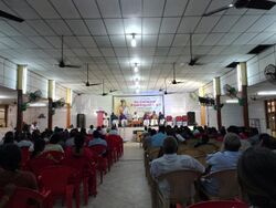 The Kural is part of Tamil people's everyday life and is used in all walks of life. K. Balachander's Kavithalayaa Productions opened its films with the very first couplet of the Kural sung in the background.[232] Kural's phrases and ideas are found in numerous songs of Tamil movies.[237] Several Tirukkuṟaḷ conferences were conducted in the twentieth century, such as those by Tirukkural V. Munusamy in 1941[238] and by Periyar E. V. Ramasamy in 1949.[239] These were attended by several scholars, celebrities and politicians.[240] The Kural's couplets and thoughts are also widely employed in visual arts,[241][242] music,[232] dance,[243] street shows,[244] recitals,[245][246] activities,[247] and puzzles and riddles.[248] The couplets are frequently quoted by various political leaders even in pan-Indian contexts outside the Tamil diaspora, including Ram Nath Kovind,[249] P. Chidambaram,[250] Nirmala Sitaraman,[250][251] and M. K. Stalin.[251] When Jallikattu aficionados claimed that the sport is only to demonstrate the "Tamil love for the bull", the then Indian Minister of Women and Child Development Maneka Gandhi denied the claim citing that the Tirukkural does not sanction cruelty to animals.[252] The Indian Prime Minister Narendra Modi has quoted the couplets on several occasions, including his recital to the Indian armed forces in 2020.[253] The Kural literature is one of the ancient texts from which the Economic Survey of India, the official annual report of the state of India's economy, draws heavy references.[254][255][256]