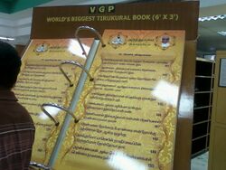 The Kural does not appear to have been set in music by Valluvar. However, a number of musicians have set it to tune and several singers have rendered it in their concerts. Modern composers who have tuned the Kural couplets include Mayuram Viswanatha Sastri and Ramani Bharadwaj. Singers who have performed full-fledged Tirukkuṟaḷ concerts include M. M. Dandapani Desikar and Chidambaram C. S. Jayaraman.[232] Madurai Somasundaram and Sanjay Subramanian are other people who have given musical rendering of the Kural. Mayuram Vishwanatha Shastri set all the verses to music in the early 20th century.[233] In January 2016, Chitravina N. Ravikiran set the entire 1330 verses to music in a record time of 16 hours.[232][234]