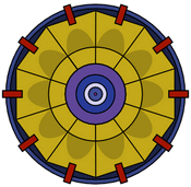 The interstage and the secondary are encased together inside a stainless steel membrane to form the canned subassembly (CSA), an arrangement which has never been depicted in any open-source drawing.[36] The most detailed illustration of an interstage shows a British thermonuclear weapon with a cluster of items between its primary and a cylindrical secondary. They are labeled "end-cap and neutron focus lens", "reflector/neutron gun carriage", and "reflector wrap". The origin of the drawing, posted on the internet by Greenpeace, is uncertain, and there is no accompanying explanation.[37]