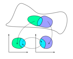 An atlas for a topological space [math]\displaystyle{ M }[/math] is an indexed family [math]\displaystyle{ \{(U_{\alpha}, \varphi_{\alpha}) : \alpha \in I\} }[/math] of charts on [math]\displaystyle{ M }[/math] which covers [math]\displaystyle{ M }[/math] (that is, [math]\displaystyle{ \bigcup_{\alpha\in I} U_{\alpha} = M }[/math]). If for some fixed n, the image of each chart is an open subset of n-dimensional Euclidean space, then [math]\displaystyle{ M }[/math] is said to be an n-dimensional manifold.