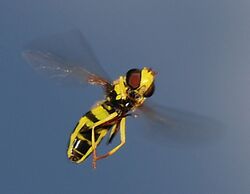 A few insects, such as Mycetophilidae (Diptera) and the beetle families Lampyridae, Phengodidae, Elateridae and Staphylinidae are bioluminescent. The most familiar group are the fireflies, beetles of the family Lampyridae. Some species are able to control this light generation to produce flashes. The function varies with some species using them to attract mates, while others use them to lure prey. Cave dwelling larvae of Arachnocampa (Mycetophilidae, fungus gnats) glow to lure small flying insects into sticky strands of silk.[89] Some fireflies of the genus Photuris mimic the flashing of female Photinus species to attract males of that species, which are then captured and devoured.[90] The colors of emitted light vary from dull blue (Orfelia fultoni, Mycetophilidae) to the familiar greens and the rare reds (Phrixothrix tiemanni, Phengodidae).[91]