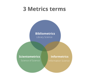 The most prominent connection between the three metrics terms is in their research objects. Since all three disciplines use literature information as their research object, therefore, they have some similarities and overlaps in their research methods and fields. Moreover, they all use mathematical methods as the basic research methods and they all apply the three basic laws, Bradford's law, Lotka's law and Zipf's law.[18][19]
