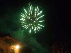 Roman Catholic and more traditional Protestant clergy wear green vestments at liturgical celebrations during Ordinary Time.[116] In the Eastern Catholic Church, green is the color of Pentecost.[117] Green is one of the Christmas colors as well, possibly dating back to pre-Christian times, when evergreens were worshiped for their ability to maintain their color through the winter season. Romans used green holly and evergreen as decorations for their winter solstice celebration called Saturnalia, which eventually evolved into a Christmas celebration.[118] In Ireland and Scotland especially, green is used to represent Catholics, while orange is used to represent Protestantism. This is shown on the national flag of Ireland.