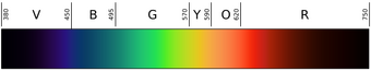 "Green" in modern European languages corresponds to about 520–570 nm, but many historical and non-European languages make other choices, e.g. using a term for the range of ca. 450–530 nm ("blue/green") and another for ca. 530–590 nm ("green/yellow").[citation needed] In the comparative study of color terms in the world's languages, green is only found as a separate category in languages with the fully developed range of six colors (white, black, red, green, yellow, and blue), or more rarely in systems with five colors (white, red, yellow, green, and black/blue).[12][13] These languages have introduced supplementary vocabulary to denote "green", but these terms are recognizable as recent adoptions that are not in origin color terms (much like the English adjective orange being in origin not a color term but the name of a fruit). Thus, the Thai word เขียว kheīyw, besides meaning "green", also means "rank" and "smelly" and holds other unpleasant associations.[14]