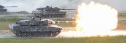 In terms of firepower, the focus of 2010s-era R&D was increased detection capability such as thermal imagers, automated fire control systems for the guns and increased muzzle energy from the gun to improve range, accuracy and armour penetration.[61] The most mature future gun technology is the electrothermal-chemical gun.[62] The XM291 electrothermal-chemical tank gun has gone through successful multiple firing sequences on a modified American M8 Armored Gun System chassis.[63] To improve tank protection, one field of research involves making the tank invisible to radar by adapting stealth technologies originally designed for aircraft. Improvements to camouflage or and attempts to render it invisible through active camouflage, which changes according to where the tank is located, are being pursued. Research is also ongoing in electromagnetic armour systems to disperse or deflect incoming shaped charges,[64][65] as well as various forms of active protection systems to prevent incoming projectiles (RPGs, missiles, etc.) from striking the tank.