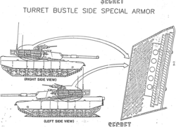 Reactive armour consists of small explosive-filled metal boxes that detonate when hit by the metallic jet projected by an exploding HEAT warhead, causing their metal plates to disrupt it. Tandem warheads defeat reactive armour by causing the armour to detonate prematurely. Modern reactive armour protects itself from Tandem warheads by having a thicker front metal plate to prevent the precursor charge from detonating the explosive in the reactive armour. Reactive armours can also reduce the penetrative abilities of kinetic energy penetrators by deforming the penetrator with the metal plates on the Reactive armour, thereby reducing its effectiveness against the main armour of the tank.