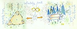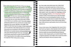 Goodiepal defines the prevailing adherence to the form of the recorded stereo track, transmitted through two speakers and composed using computer software displaying time progression from left to right, as the primary limitation to be challenged in current computer music.[8] This form has now become so much a cliché that one of Goodiepal’s main ambitions with the Mort Aux Vaches Ekstra Extra/Radical Computer Music exercise is to force the participant to reject or challenge the progressive time line moving from A to B in favour of a compositional artifice where time does not progress. This strategy is in effect an exclusion of the notion of time altogether and the game scenario places the participant in a centre position between at least two or three musical objects, all heavily loaded with information. Since the level of interest, with which the participant will respond to these objects, cannot be immediately determined, they will pull away from the centre point with infinite strength and so create a vacuum.[9] From here the participant conceives a composition, which is then notated in the school book.