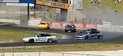 There is some regional variation. For example, in Australia, the chase car is judged on how accurately it emulates the drift of the lead car, as opposed to being judged on its own merit — this is only taken into consideration by the judges if the lead car is on the appropriate racing line.[10] Other variations of the tansō/tsuisō and the tansō-only method is multi-car group judging, seen in Drift Tengoku videos where the four-car team is judged in groups.[11]