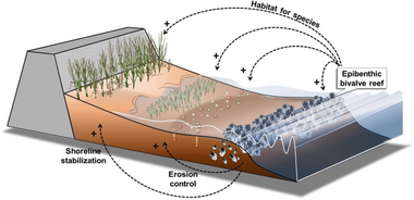 Bivalve reefs provide coastal protection through erosion control and shoreline stabilization, and modify the physical landscape by ecosystem engineering, thereby providing habitat for species by facilitative interactions with other habitats such as tidal flat benthic communities, seagrasses and marshes.[23]