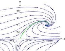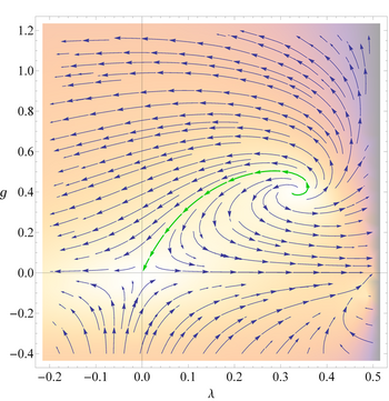 After having realized the perturbative nonrenormalizability of gravity, physicists tried to employ alternative techniques to cure the divergence problem, for instance resummation or extended theories with suitable matter fields and symmetries, all of which come with their own drawbacks. In 1976, Steven Weinberg proposed a generalized version of the condition of renormalizability, based on a nontrivial fixed point of the underlying renormalization group (RG) flow for gravity.[3] This was called asymptotic safety.[4] [5] The idea of a UV completion by means of a nontrivial fixed point of the renormalization groups had been proposed earlier by Kenneth G. Wilson and Giorgio Parisi in scalar field theory[6][7] (see also Quantum triviality). The applicability to perturbatively nonrenormalizable theories was first demonstrated explicitly for the non-linear sigma model[8] and for a variant of the Gross–Neveu model.[9]