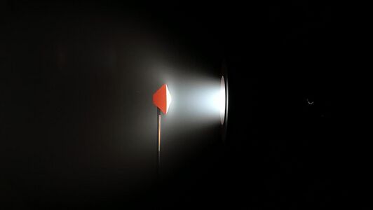 Blunt cylinder in a low pressure supersonic argon plasma flow in the Phedra facility.Phedra facility, ICARE, CNRS (Viviana Lago).