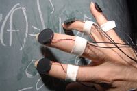 In computing, scratch input is an acoustic-based method of Human-Computer Interaction (HCI) that takes advantage of the characteristic sound produced when a finger nail or other object is dragged over a surface, such as a table or wall. The technique is not limited to fingers; a stick or writing implements (e.g. chalk, or a pen) can also be used. The sound is often inaudible to the naked ear (i.e., silent). However, specialized microphones can digitize the sounds for interactive purposes. Scratch input was invented by Mann et al. in 2007,[1][2][3] though the term was first used by Chris Harrison et al.[4]