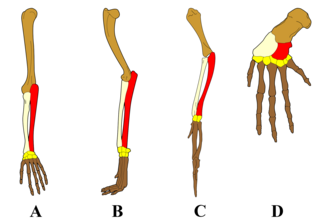 Aside from the aforementioned double pair of wings found in insects, other examples of homology include the forearm structure of tetrapod limbs, this is perhaps the most famous example of homology, and is featured in many textbooks. The flippers of dolphins, the wings of bats and birds, and the arms and grasping hands of humans are all homologous to each other, each resulting from a shared ancestor akin to something like Acanthostega gunnari or the famous "fishapod" Tiktaalik.[5]
