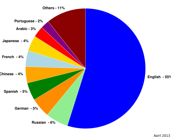 The prevalent language for communication via the Internet has always been English. This may be a result of the origin of the Internet, as well as the language's role as a lingua franca and as a world language. Early computer systems were limited to the characters in the American Standard Code for Information Interchange (ASCII), a subset of the Latin alphabet. After English (27%), the most requested languages on the World Wide Web are Chinese (25%), Spanish (8%), Japanese (5%), Portuguese and German (4% each), Arabic, French and Russian (3% each), and Korean (2%).[105] The Internet's technologies have developed enough in recent years, especially in the use of Unicode, that good facilities are available for development and communication in the world's widely used languages. However, some glitches such as mojibake (incorrect display of some languages' characters) still remain.