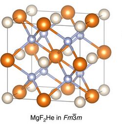 - ↑ Liu, Zhen; Botana, Jorge; Hermann, Andreas; Valdez, Steven; Zurek, Eva; Yan, Dadong; Lin, Hai-qing; Miao, Mao-sheng (5 March 2018). "Reactivity of He with ionic compounds under high pressure". Nature Communications 9 (1): 951. doi:10.1038/s41467-018-03284-y. PMID 29507302. Bibcode: 2018NatCo...9..951L.