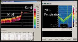 Another approach comes from greater signal processing of existing military sensors.[12] The US Naval Research Laboratory demonstrated both seafloor characterization, as well as subsurface characteristics of the seafloor. Sensors used, in different demonstrations, included normal incidence beams from the AM/UQN-4 surface ship depth finder, and AN/BQN-17 submarine fathometer; backscatter from the Kongsberg EM-121 commercial multibeam sonar; AN/UQN-4 fathometers on mine countermeasures (MCM) ships, and the AN/AQS-20 mine-hunting system. These produced the "Bottom and Subsurface Characterization" graphic.