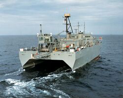 Newer Low-Frequency Active (LFA) systems are controversial, as their very high sound pressures may be hazardous to whales and other marine life .[31] A decision has been made to employ LFA on SURTASS vessels, after an environmental impact statement that indicated, if LFA is used with decreased power levels in certain high-risk areas for marine life, it would be safe when employed from a moving ship. The ship motion, and the variability of the LFA signal, would limit the exposure to individual sea animals.[32] LFA operates in the low-frequency (LF) acoustic band of 100–500 Hz. It has an active component, the LFA proper, and the passive SURTASS hydrophone array. "The active component of the system, LFA, is a set of 18 LF acoustic transmitting source elements (called projectors) suspended by cable from underneath an oceanographic surveillance vessel, such as the Research Vessel (R/V) Cory Chouest, USNS Impeccable (T-AGOS 23), and the Victorious class (TAGOS 19 class).