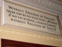 Freedom of thought is the precursor and progenitor of—and thus is closely linked to—other liberties, including freedom of religion, freedom of speech, and freedom of expression.[2] Though freedom of thought is axiomatic for many other freedoms, they are in no way required for it to operate and exist. The conception of a freedom or a right does not guarantee its inclusion, legality, or protection via a philosophical caveat. It is a very important concept in the Western world and nearly all democratic constitutions protect these freedoms.