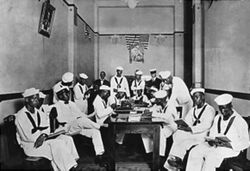 Elected in 1912, President Woodrow Wilson tolerated the extension of segregation throughout the federal government that was already underway.[61] In World War I, Blacks were drafted and served in the United States Army in segregated units.[62] The U.S. military was still heavily segregated in World War II. The air force and the marines had no Blacks enlisted in their ranks. There were Blacks in the Navy Seabees. The army had only five African-American officers.[63] In addition, no African-American would receive the Medal of Honor during the war, and their tasks in the war were largely reserved to noncombat units. Black soldiers had to sometimes give up their seats in trains to the Nazi prisoners of war.[63]