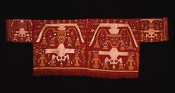 The Robert Woods Bliss Collection of Pre-Columbian Art comprises objects from the ancient cultures of Mesoamerica, the Intermediate Area, and the Andes. Among its most important holdings are a variety of sculptures in stone, including carvings of Aztec deities and animals and several large relief panels bearing the likenesses of Maya kings. In addition there are sculpted anthropomorphic figurines and polished jade renderings of ritual objects from the Olmec, Veracruz, and Teotihuacan cultures as well as molded and painted ceramics of the Nasca, Moche, and Wari cultures. Gold and silver objects from the Chavín, Lambayeque, Chimú, and Inca cultures offer evidence of the expertise achieved by Andean metalsmiths, and over forty textiles and works in feathers testify to the importance of fiber arts in this region.