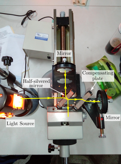 Early experimentalists attempting to detect the Earth's velocity relative to the supposed luminiferous aether, such as Michelson and Morley (1887)[1] and Miller (1933),[4] used quasi-monochromatic light only for initial alignment and coarse path equalization of the interferometer. Thereafter they switched to white (broadband) light, since using white light interferometry they could measure the point of absolute phase equalization (rather than phase modulo 2π), thus setting the two arms' pathlengths equal.[5][note 1][6][note 2] More importantly, in a white light interferometer, any subsequent "fringe jump" (differential pathlength shift of one wavelength) would always be detected.
