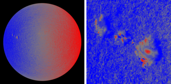 In one example of the use of the MDI, Stanford scientists reported the detection of several sunspot regions in the deep interior of the Sun, 1–2 days before they appeared on the solar disc.[33] The detection of sunspots in the solar interior may thus provide valuable warnings about upcoming surface magnetic activity which could be used to improve and extend the predictions of space weather forecasts.