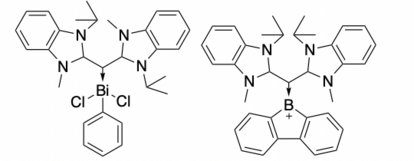 - ↑ Walley, Jacob; Warring, Levi; Wang, Guocang; Dickie, Diane; Pan, Sudip; Frenking, Gernot; Gilliard Jr., Robert (2020). "Carbodicarbene Bismaalkene Cations: Unravelling the Complexities of Carbene versus Carbone in Heavy Pnictogen Chemistry". Angewandte Chemie International Edition 60 (12): 6682–6690. doi:10.1002/anie.202014398. PMID 33290596.