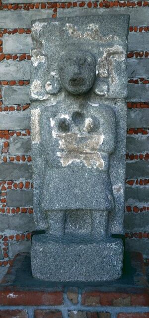 It is an altar, identified due to a stone sculpture representing a female character and some clay incense burners were found during the excavations. The form of these is easily identified in the Mendocino Codex; they resemble big ladles of long handles.[2]
