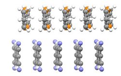 In 1862, Henry Letheby obtained a partly conductive material by anodic oxidation of aniline in sulfuric acid. The material was probably polyaniline.[2] In the 1950s, researchers discovered that polycyclic aromatic compounds formed semi-conducting charge-transfer complex salts with halogens. In particular, high conductivity of 0.12 S/cm was reported in perylene–iodine complex in 1954.[3] This finding indicated that organic compounds could carry current.
